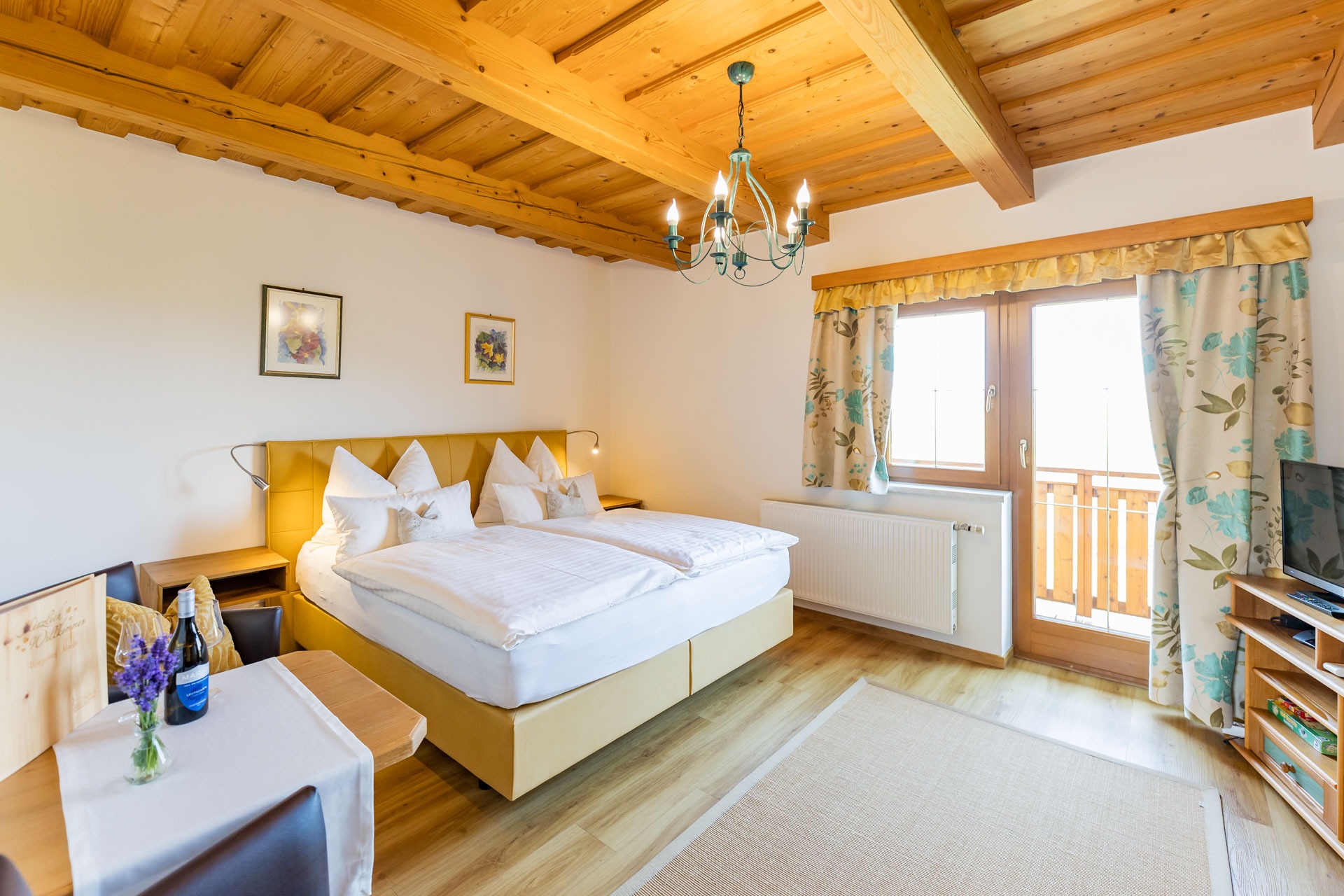 Unsere zwei Doppel-Zimmer und die Ferienwohnung sind liebevoll mit Naturholz eingerichtet.